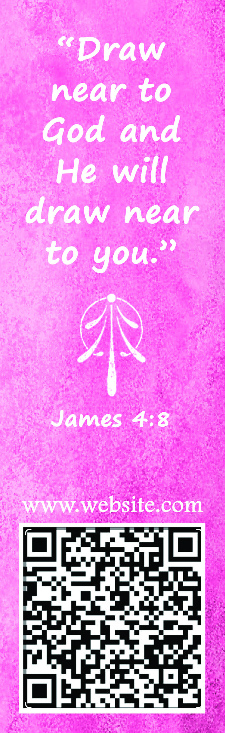 Back design: Bible verse, QR code, and author’s contact details.